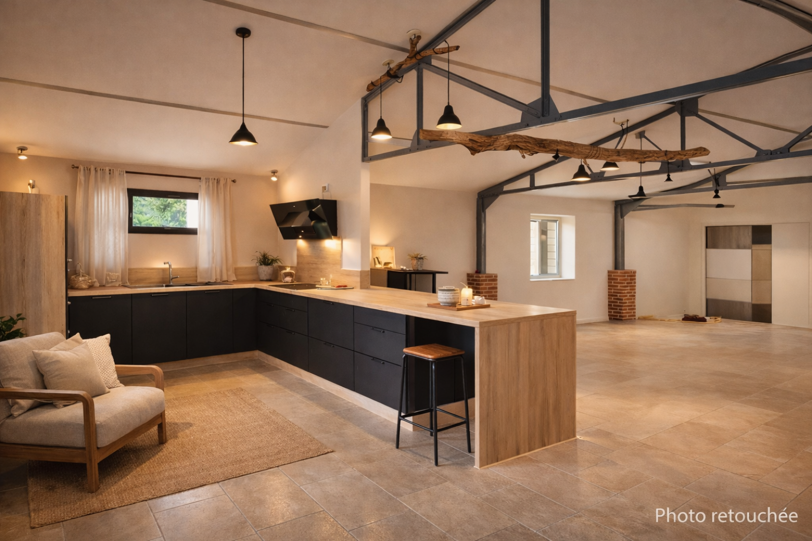 Les amateurs d’espaces atypiques apprécieront également une pièce de 50 m² conservant les anciennes cuves, actuellement aménagée en salle de sport, ainsi qu’un garage d’environ 60 m².