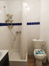 Une salle d'eau avec wc et une petite chambre/bureau ou dressing.