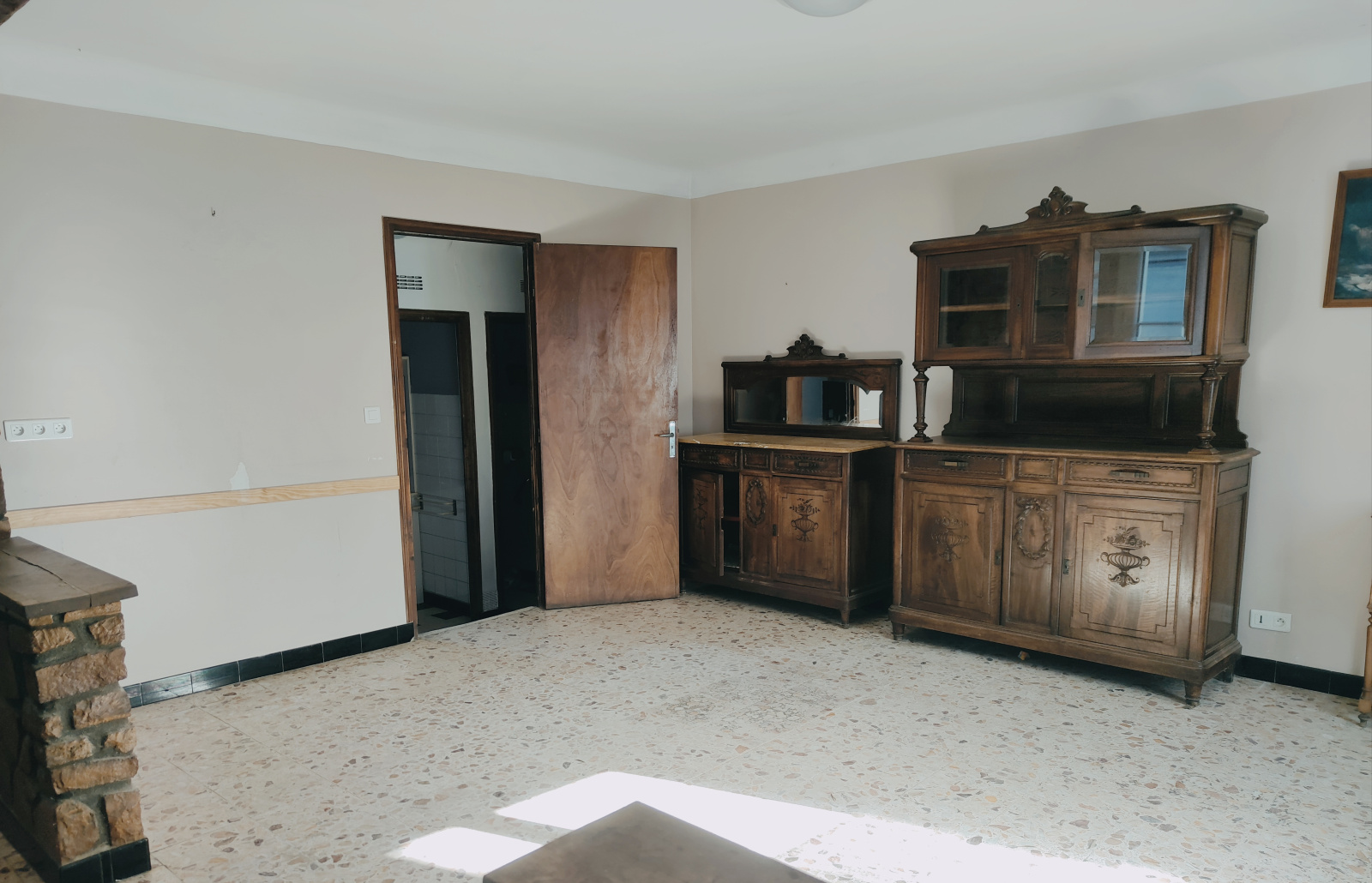 Vous découvrez ensuite deux pièces d'environ 22 m² à rénover entièrement et deux autres chambres à l'étage.