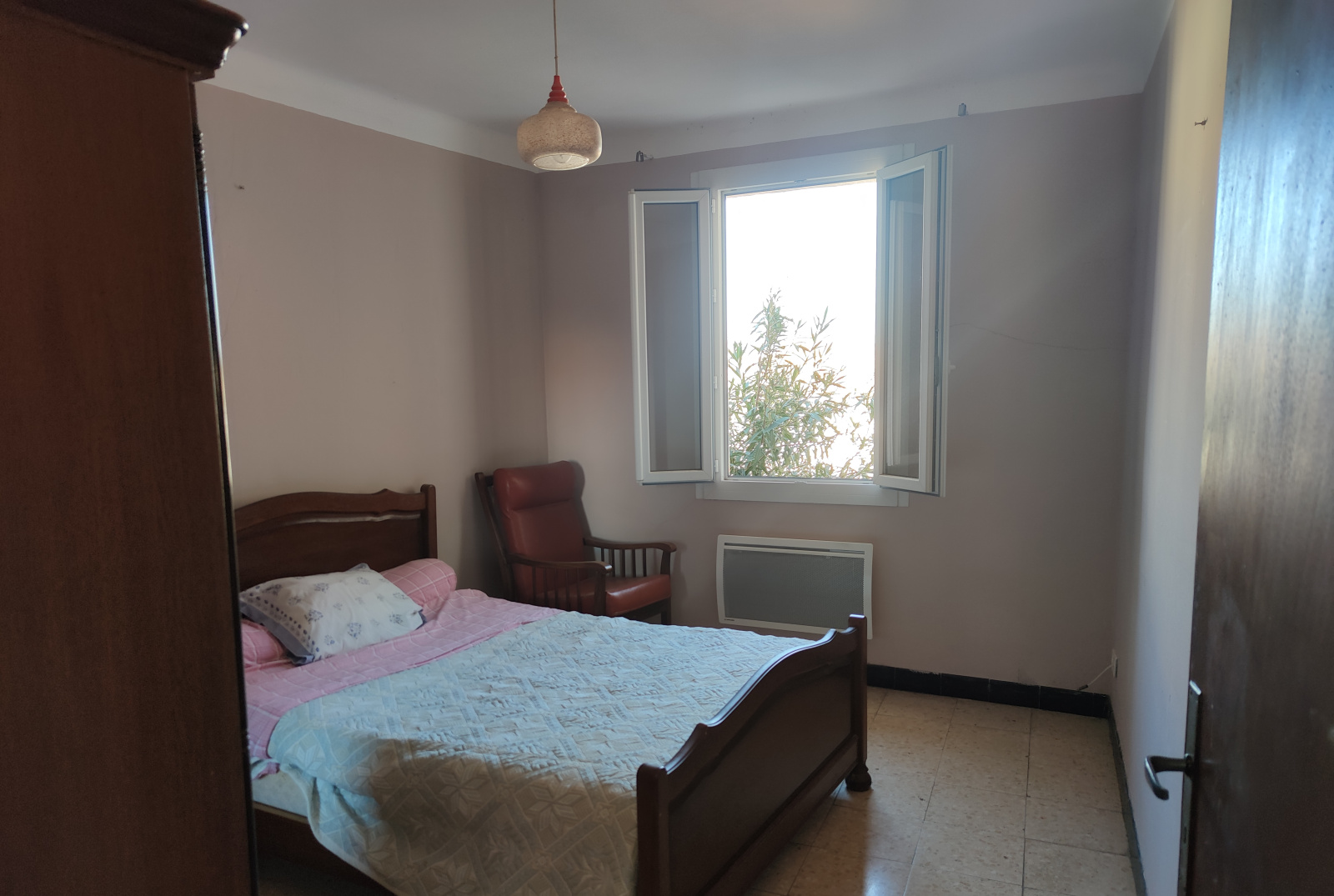 Vous entrez par une lumineuse pièce à vivre avec son coin cuisine d'environ 30 m², puis une grande chambre et une salle d'eau avec WC.