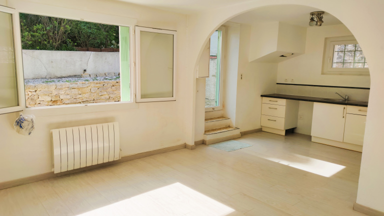 Au rez de chaussée, un T3 comprenant une cuisine séparée, un salon/salle à manger, une salle d'eau avec wc et 2 chambres. Un jardin de 70 m² environ complète cet appartement déjà loué !